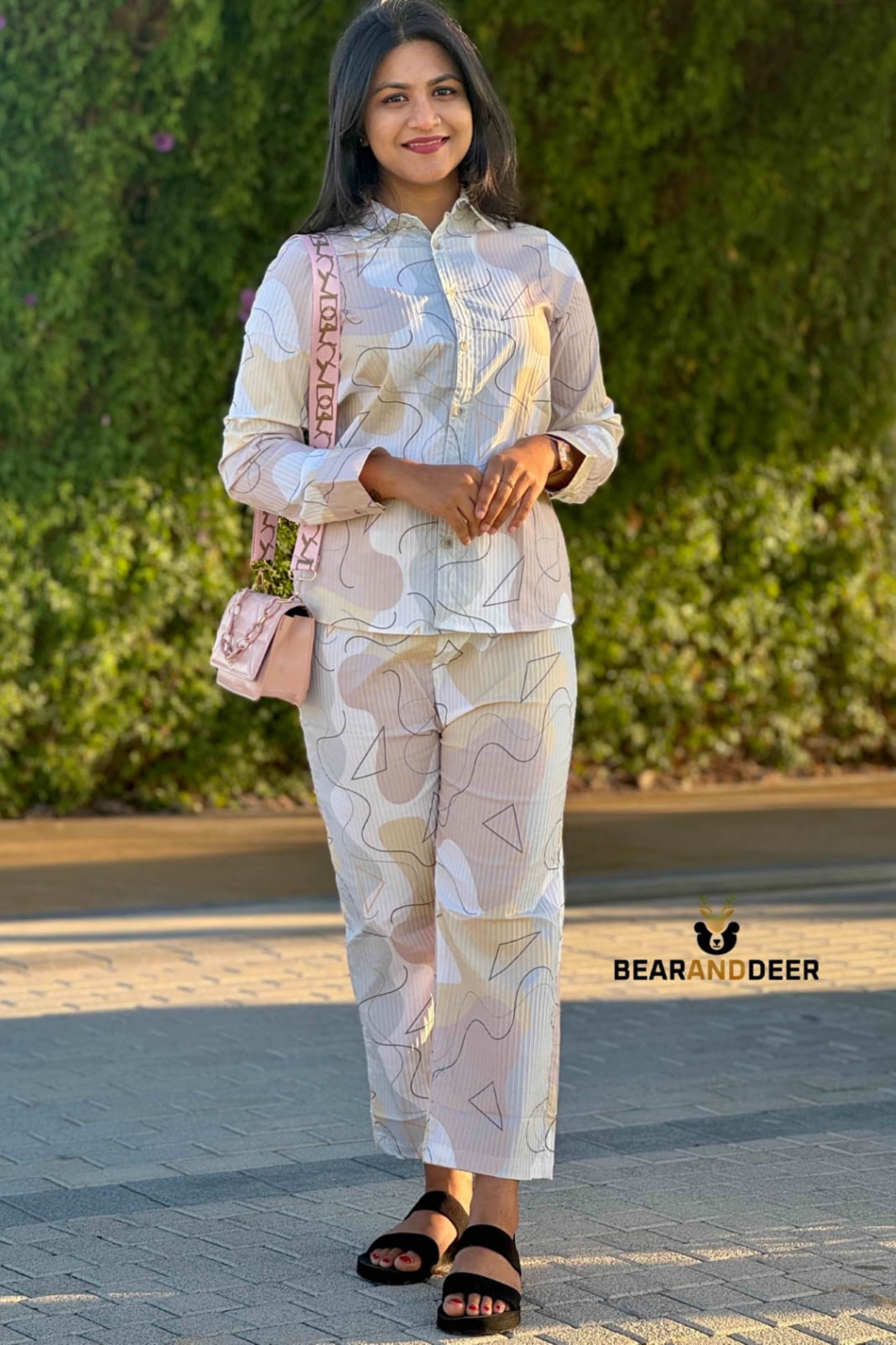 Pant:- the Pant Has a Wide Leg Style & an Elasticated Waistband || Top:- the Top Has Button Front Full Sleeve Shirt.